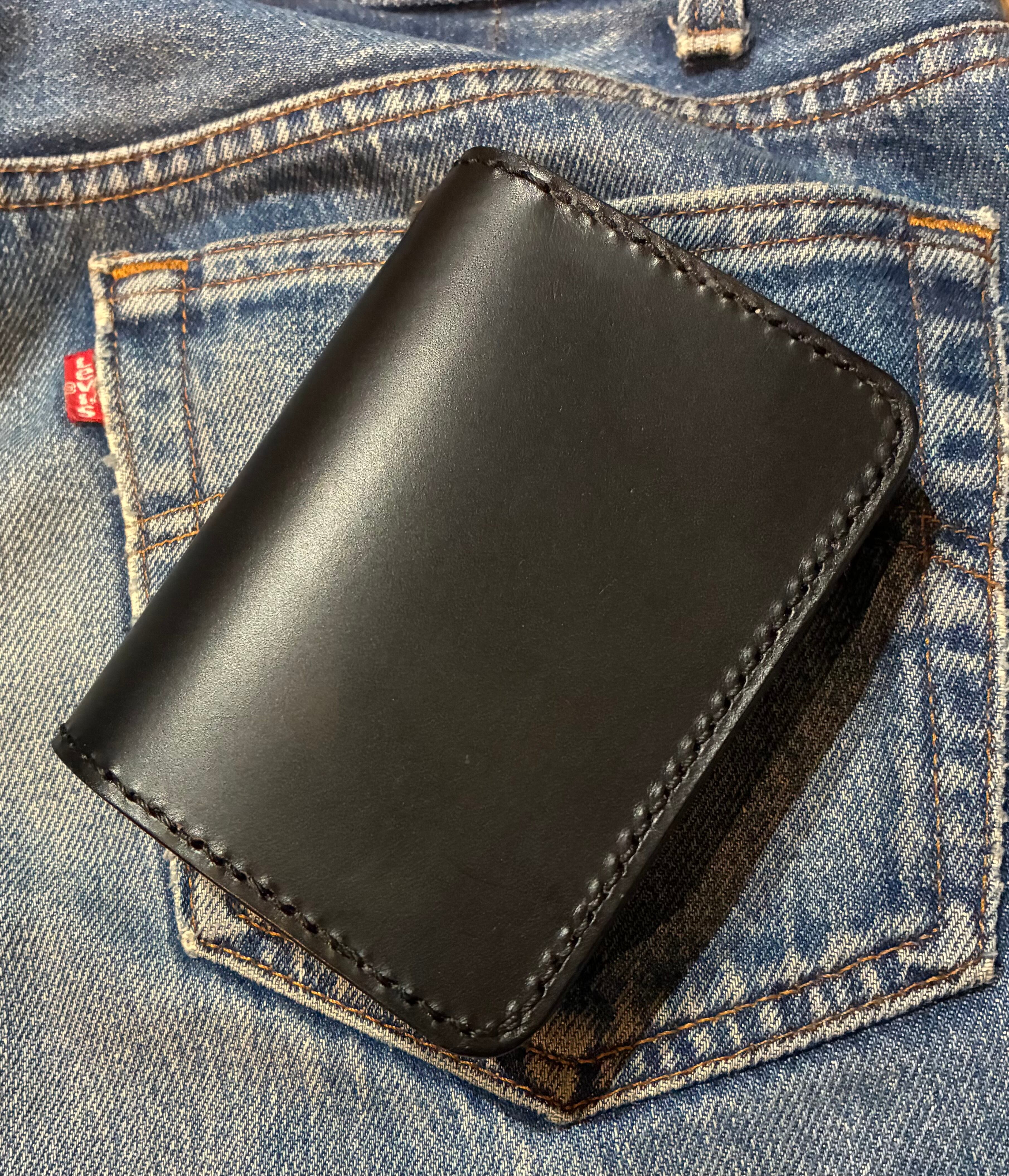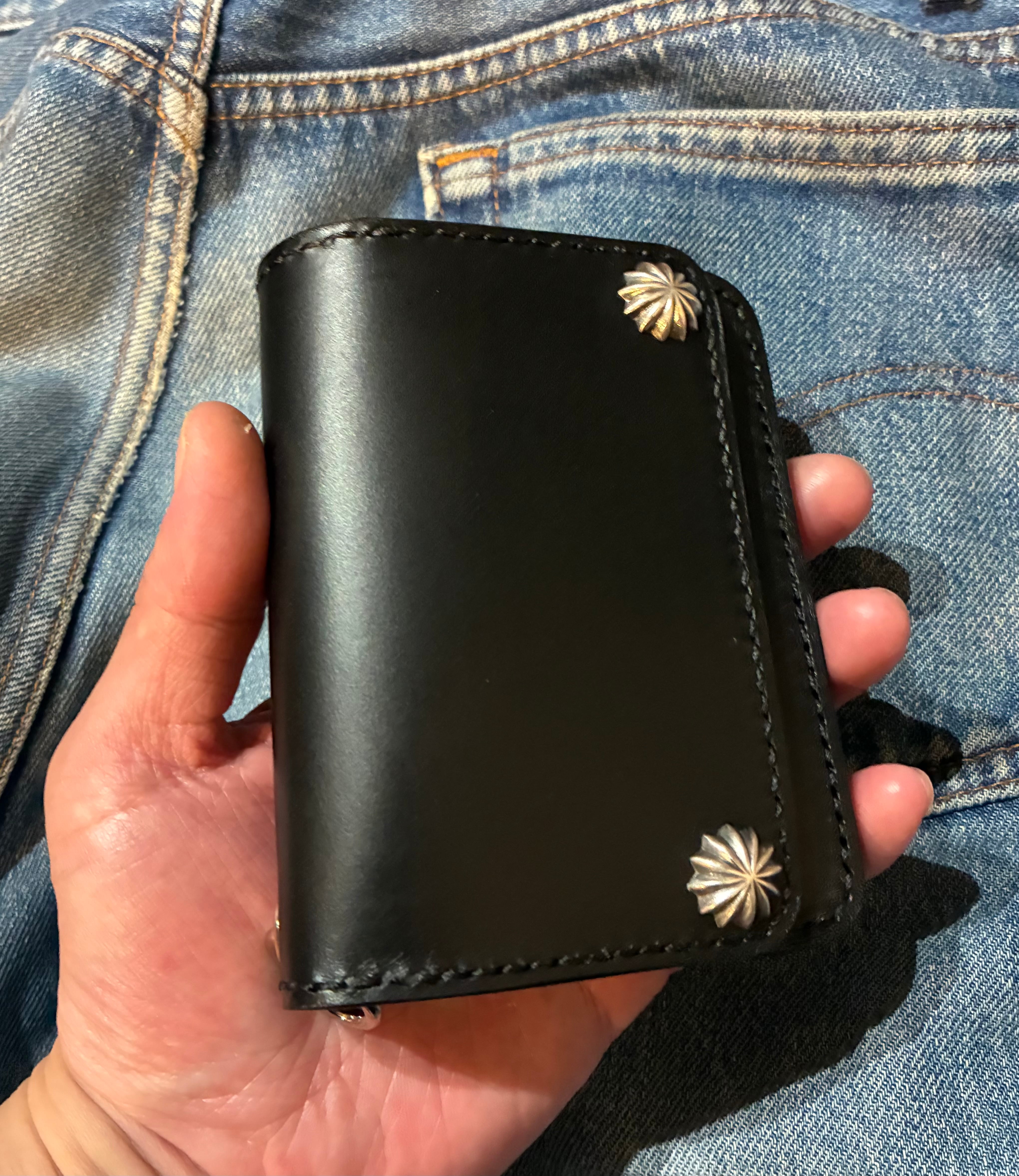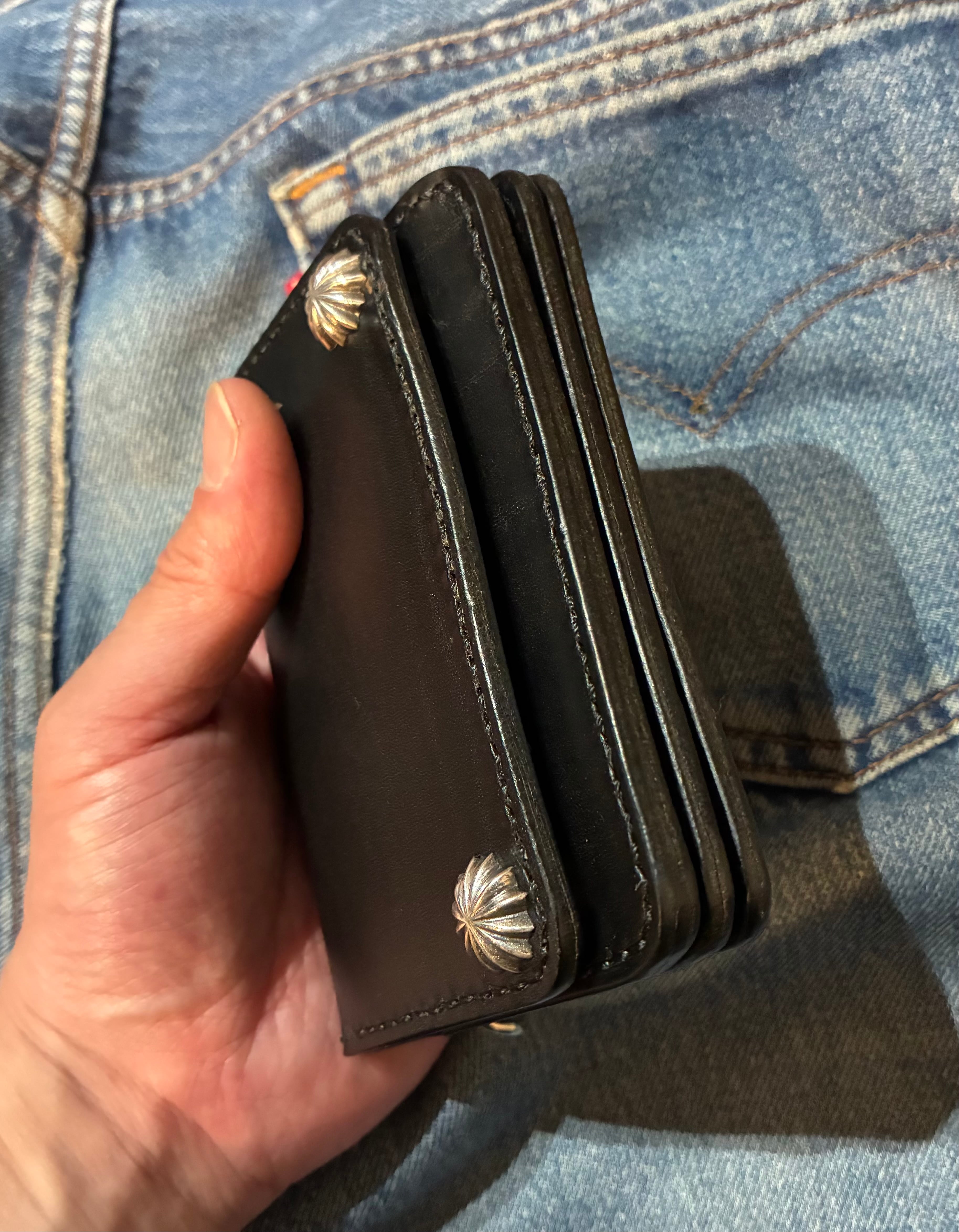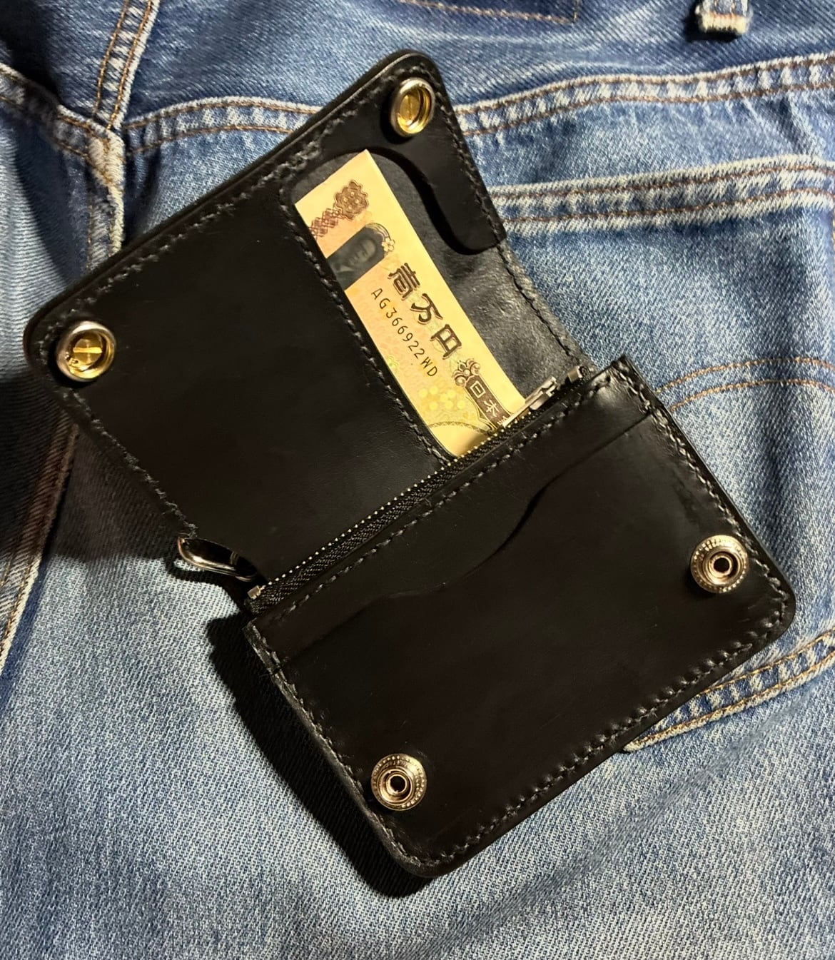 イタリアンレザー ブルガロを使用した3層構造のショートサイズのトラッカーウォレット。
